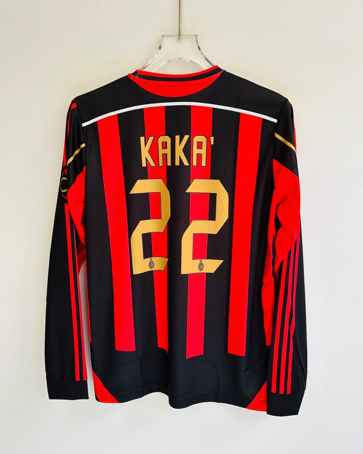 Featuring the classic Rossoneri red and black stripes with long sleeves for an authentic retro look, this jersey captures the magic of Kaká at his absolute peak. Designed for both comfort and style, it’s perfect for match days, collectors, and everyday wear.