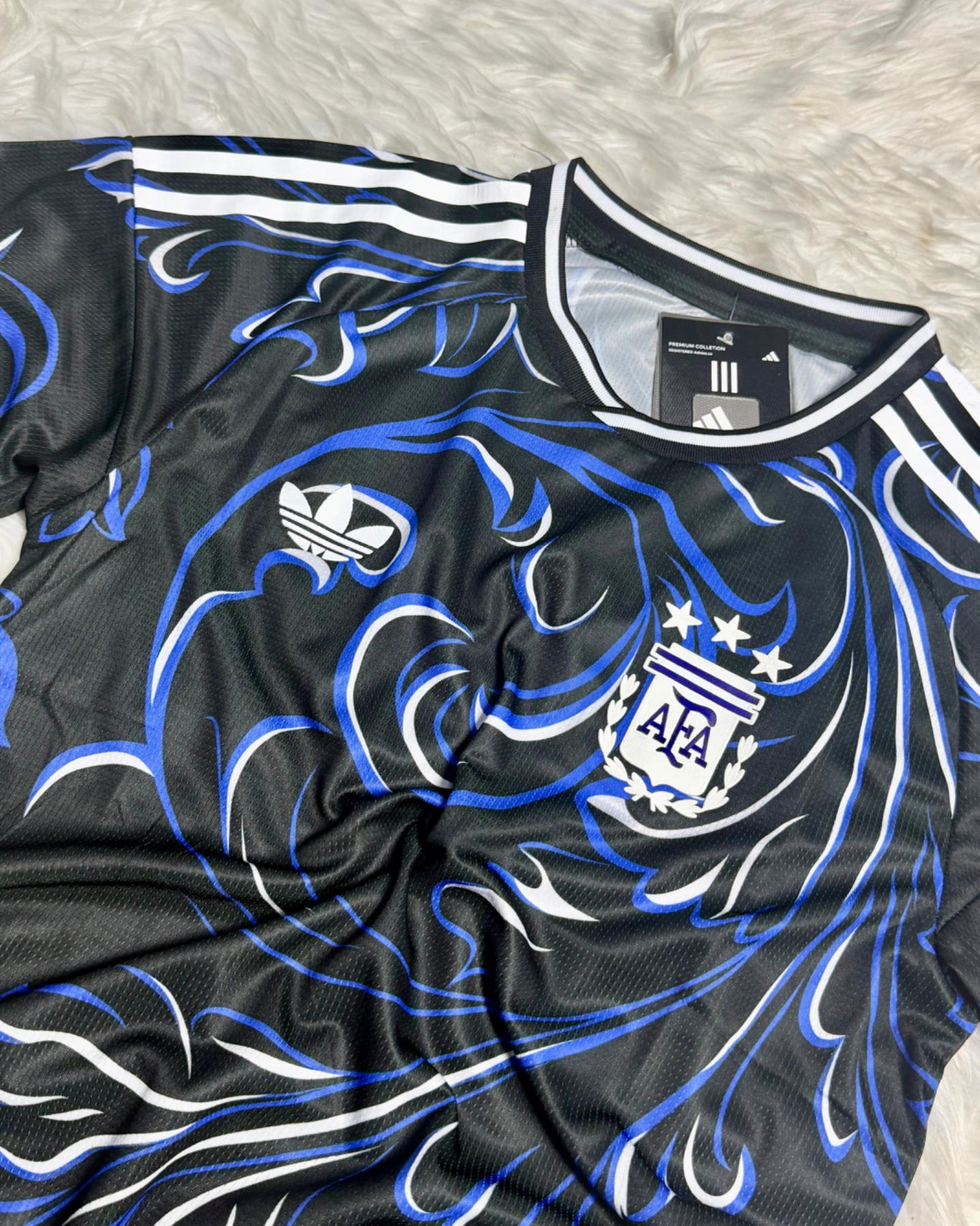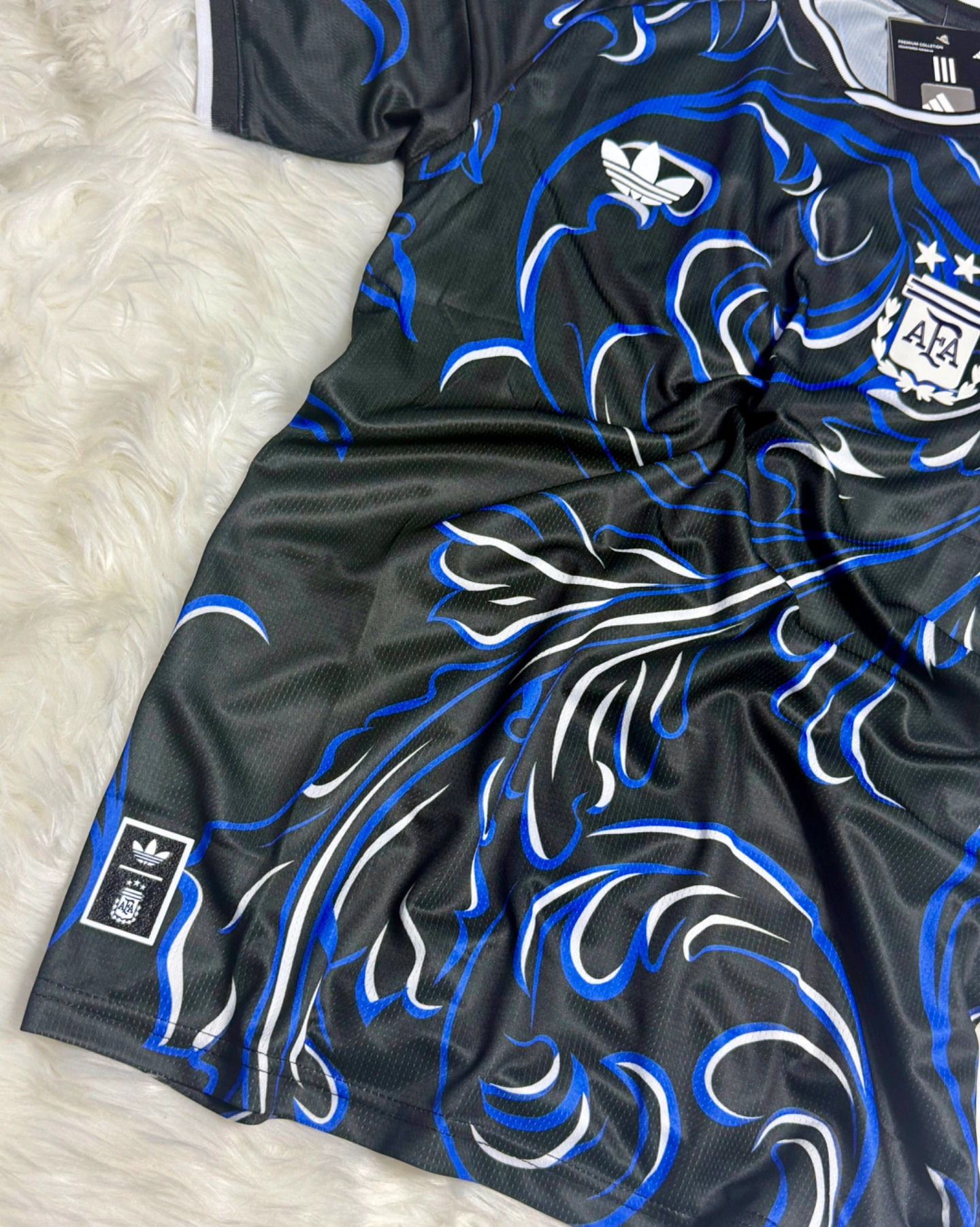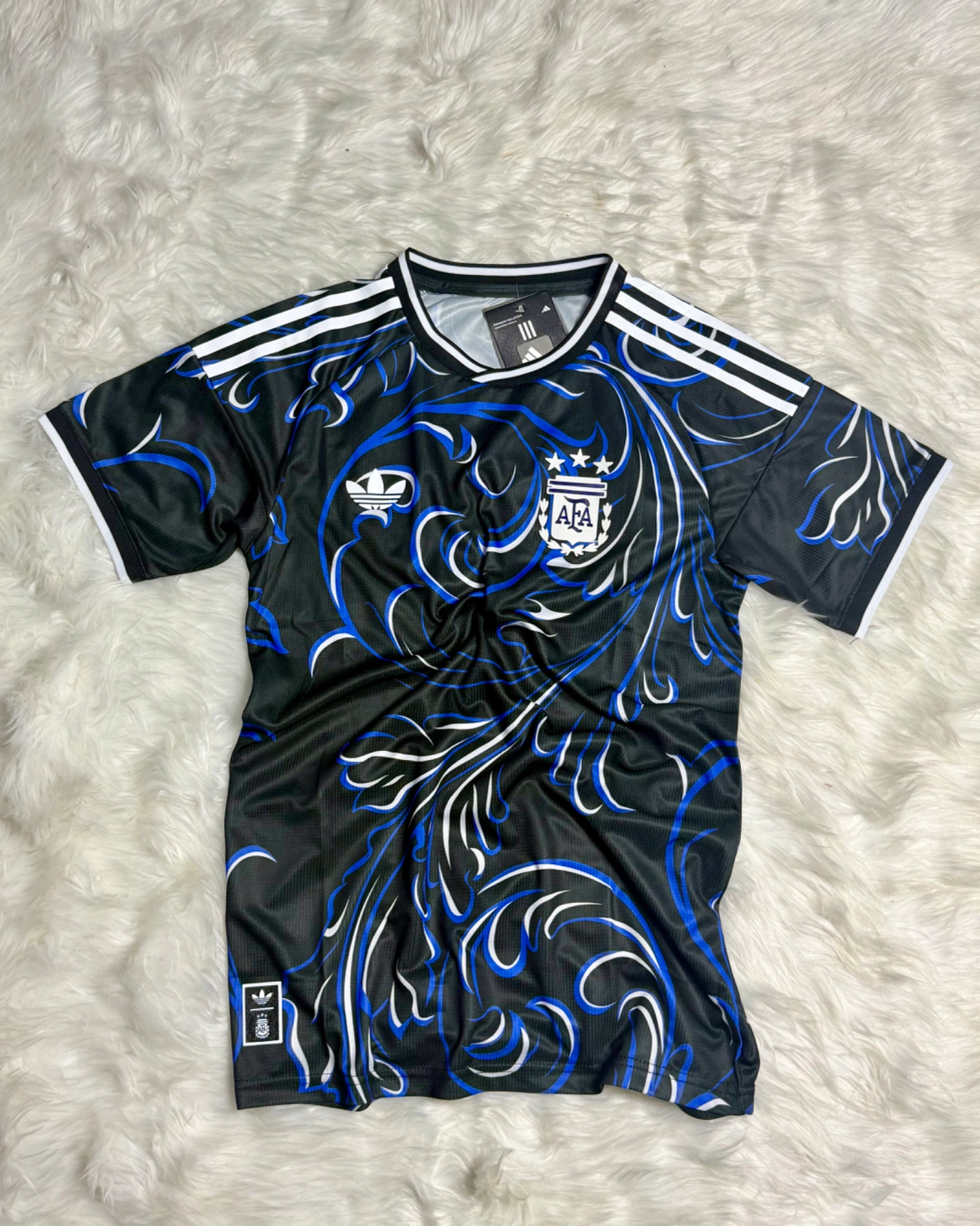 A tribute to the spirit of Argentina, the Argentina 26 Away Authentic Jersey captures the passion and artistry of Argentine culture. With its bold swirling design, the jersey is inspired by popular artistic expressions. Designed for those who live and breathe soccer, it combines style with performance. Climacool+ technology helps you stay fresh, cool, and comfortable throughout your game. Crafted with a higher crew neck, this adidas jersey offers a tailored fit that feels locked-in, thanks to body mapping technology. A heat-applied label and UV-print serve as a seal of authenticity. With its official match design, this is the jersey worn by players on the field, embodying the spirit of the game. Channel Argentinian pride whenever you wear it.