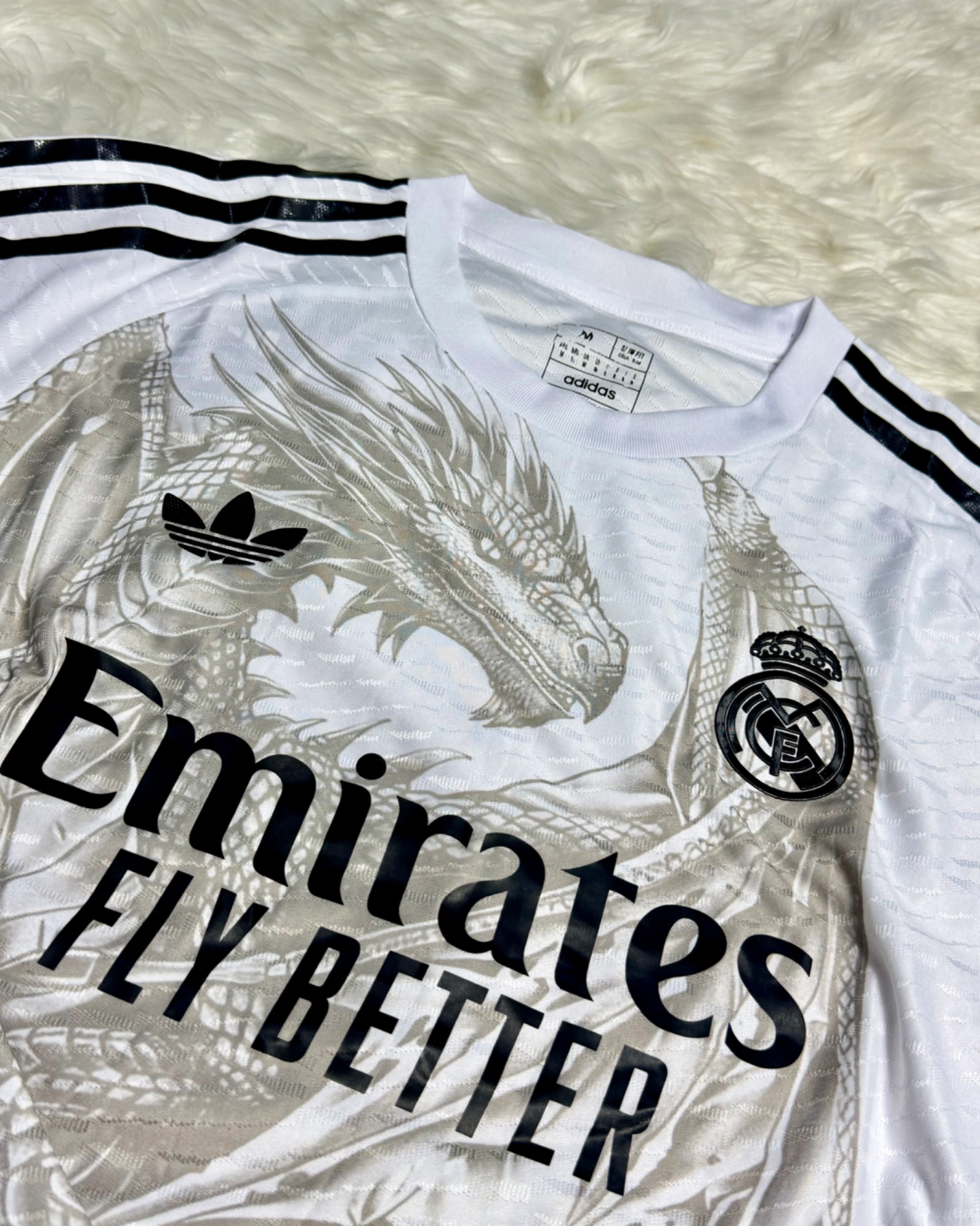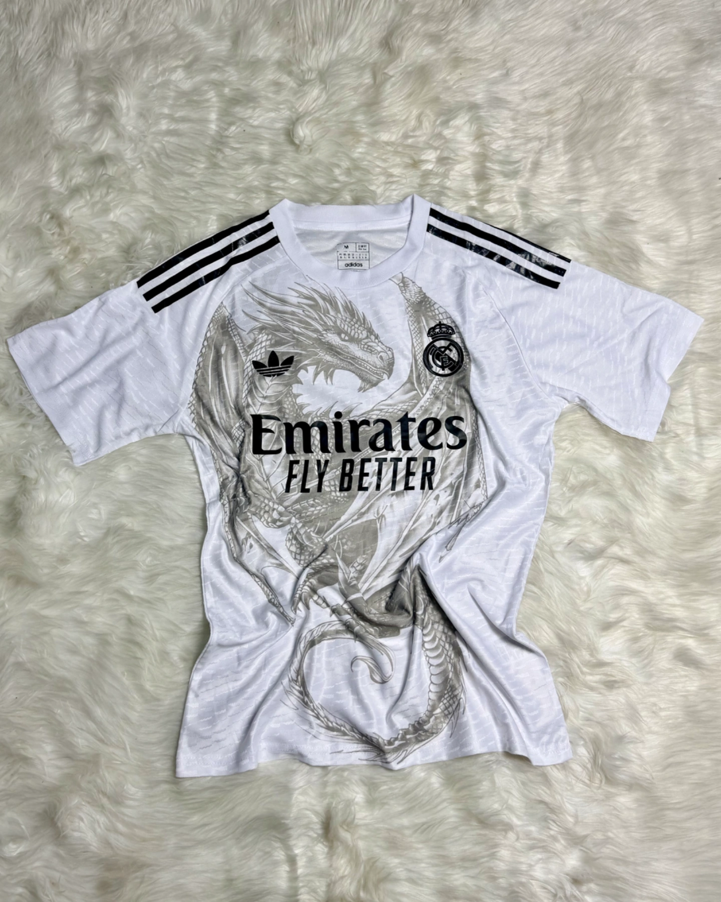 Stand out with the Real Madrid Black Dragon Jersey Player Grade, designed for elite performance and bold style. Made with premium breathable fabric and a slim athletic fit, this jersey mirrors what the pros wear. Features high-quality printed logos for a sleek finish—perfect for match days or streetwear.