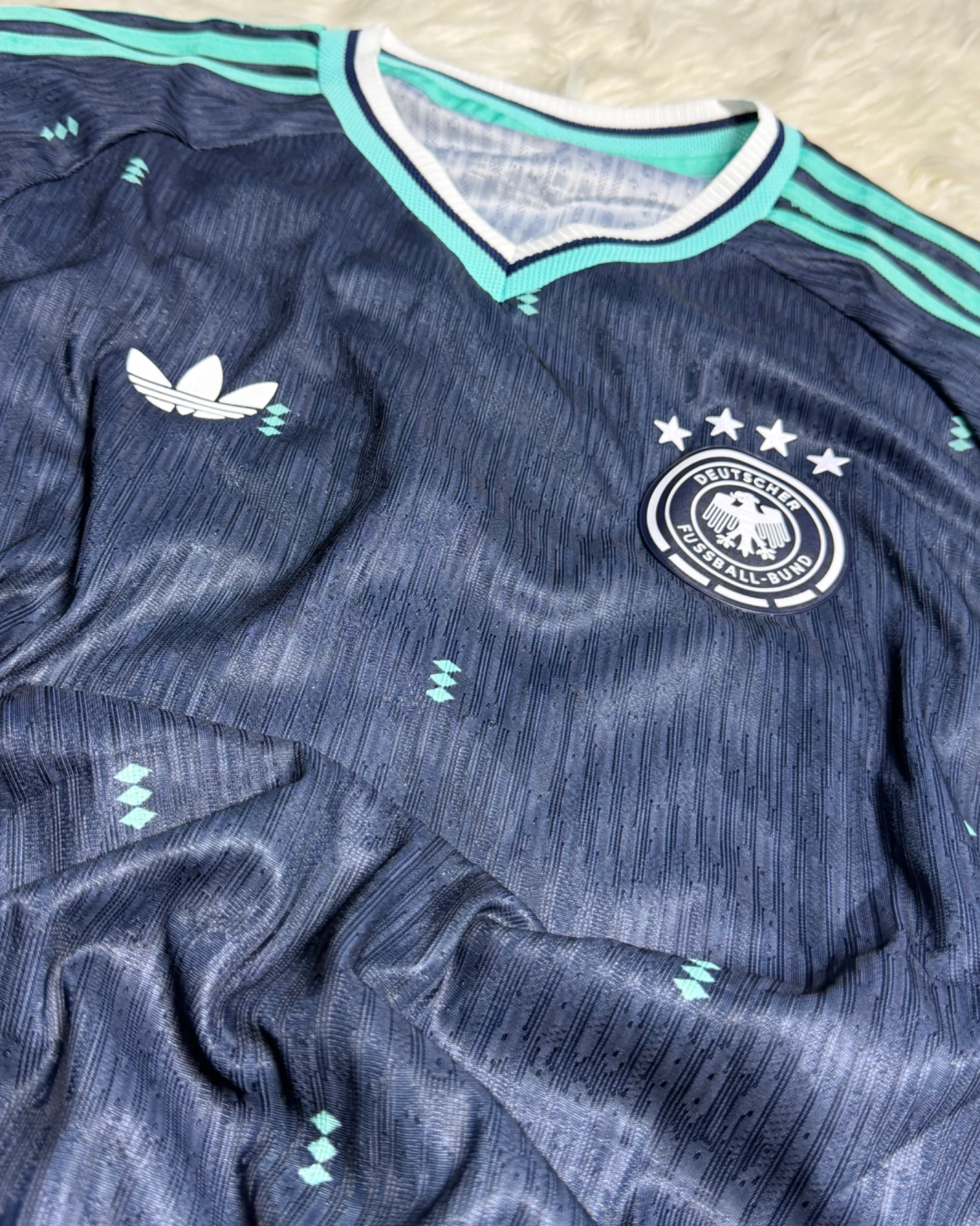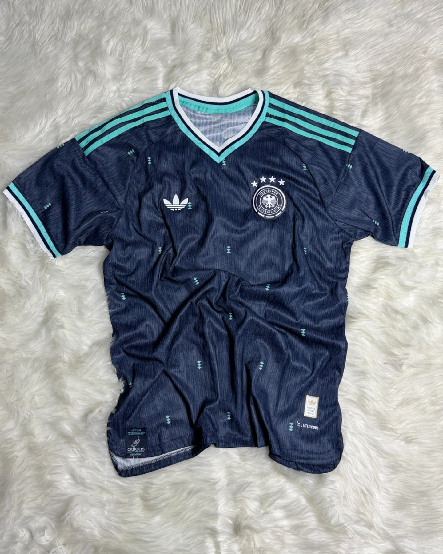 Introducing the Germany 26 Away Jersey. Inspired by legendary moments, it blends soccer heritage with innovation. Designed for athletes and soccer fans alike, make this your go-to choice for comfort and style both on and off the field. It incorporates Climacool technology, which wicks and disperses sweat for a cool, dry and distraction-free performance. This jersey is crafted from quick-drying doubleknit fabric, so you can focus on your technique. This piece is created in a slim fit for a streamlined silhouette that moves with you, with a ribbed waistband added for a stylish touch. Featuring the federation crest and a flag label sign-off, the design is rounded off by iconic adidas branding. Every detail is crafted for those who demand more from their kit. Whether you're chasing victory or showing your support, celebrate soccer and the pride of a nation with this stylish short-sleeved jersey.